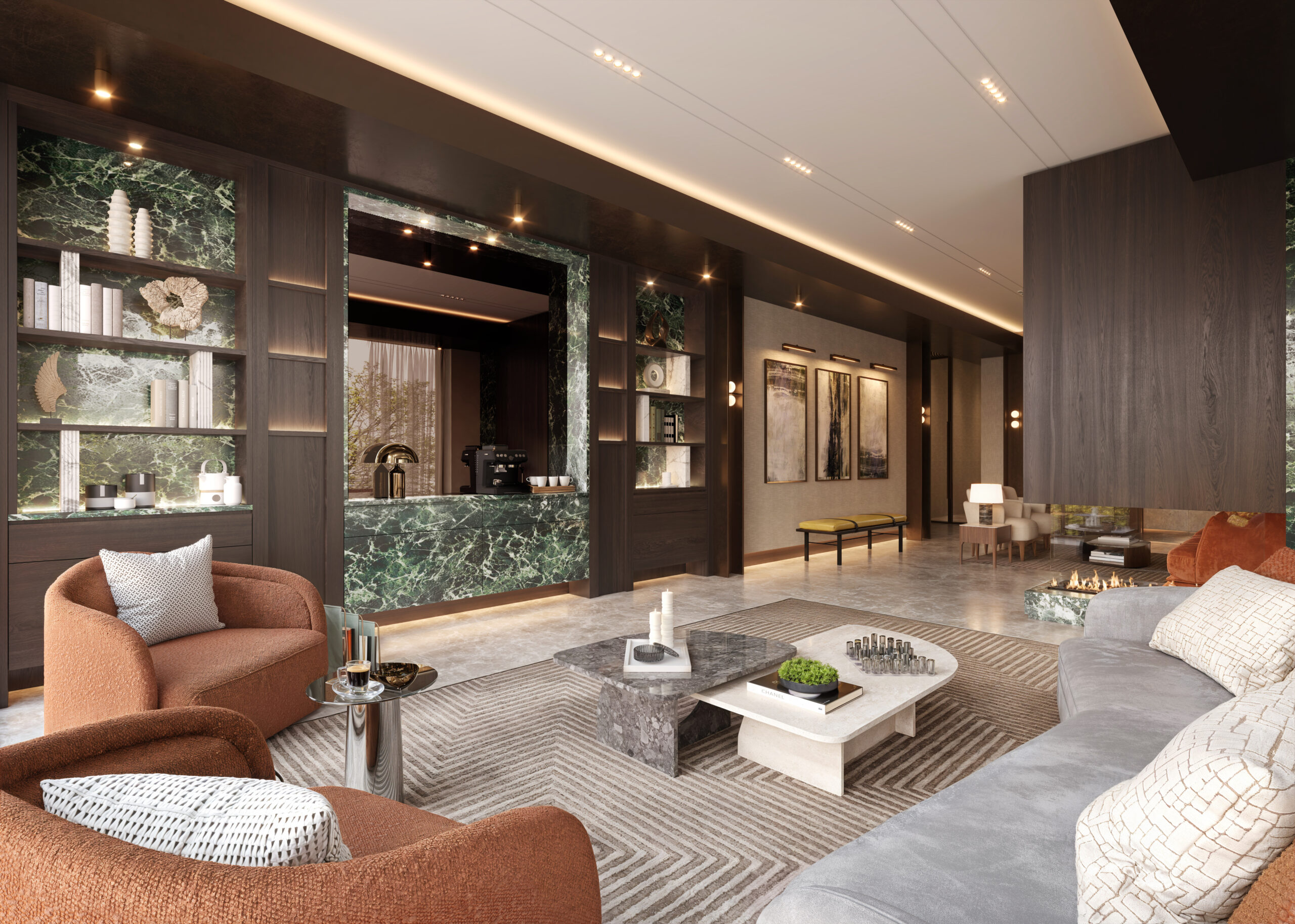 The Tower Lobby welcomes residents home with the atmosphere of London’s finest five-star hotels — a space designed to elevate the everyday and reflect the lifestyle of those who call Westminster Tower home.